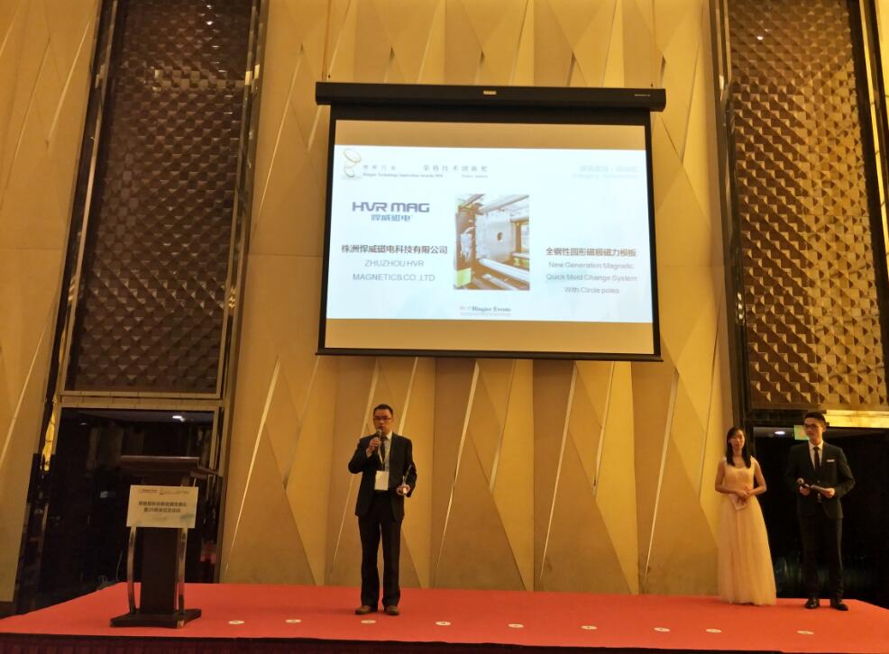悍威磁電研發生產的磁力快速換模系統,榮獲2018塑料行業榮格技術創新獎!在此次頒獎盛典上悍威磁電向業界介紹磁力快速換模系統,助力塑料工業4.0!
